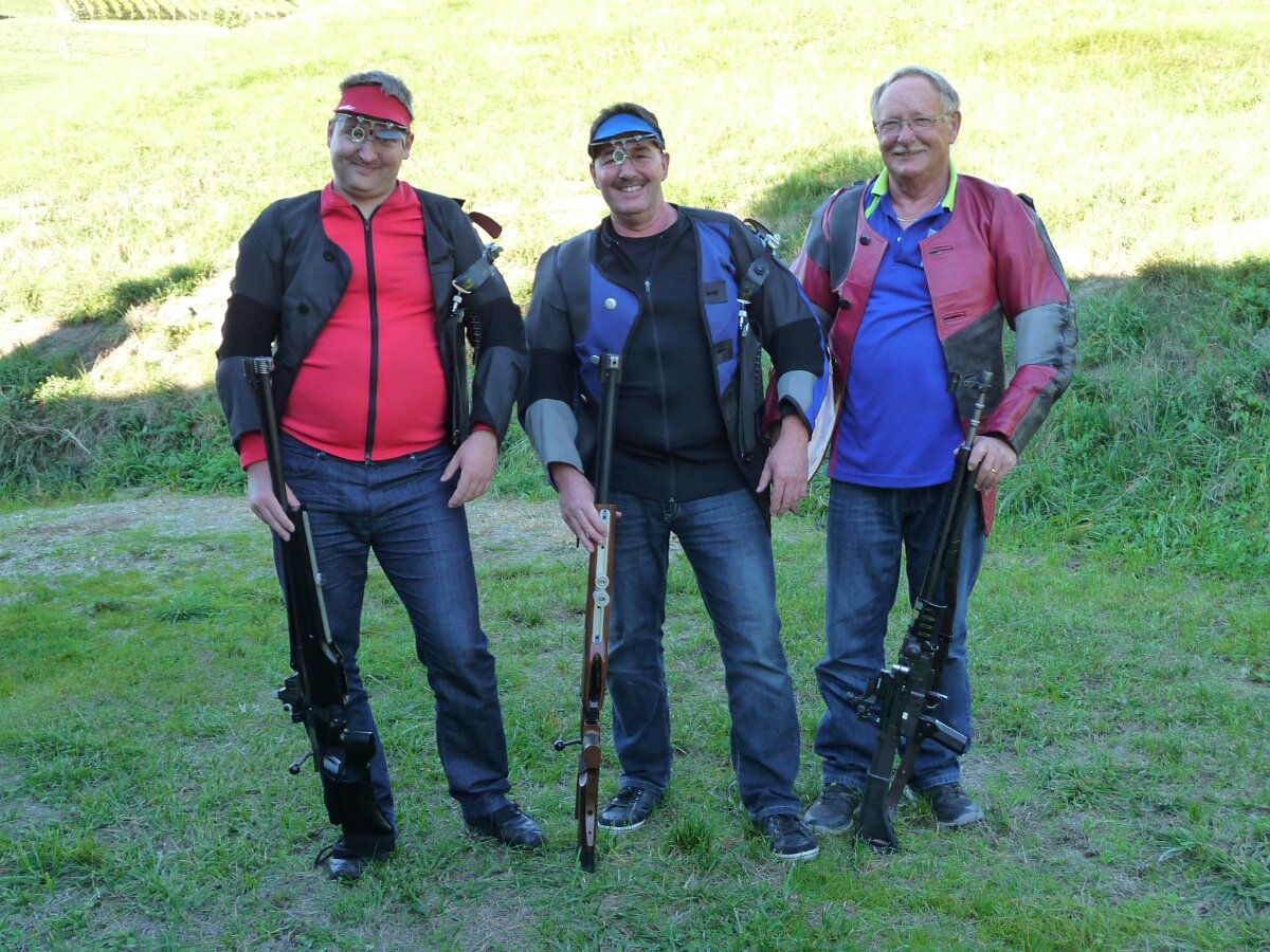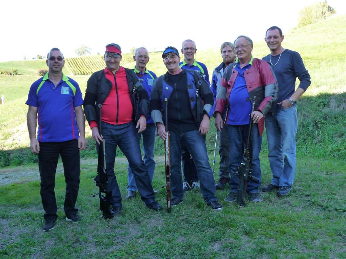 Endschiessen v.L.n.R Walter Rüede (2), Toni Weiss (4), Sieger René Herrmann, Geri Ehresheim (5) und Franz Merkofer (3)